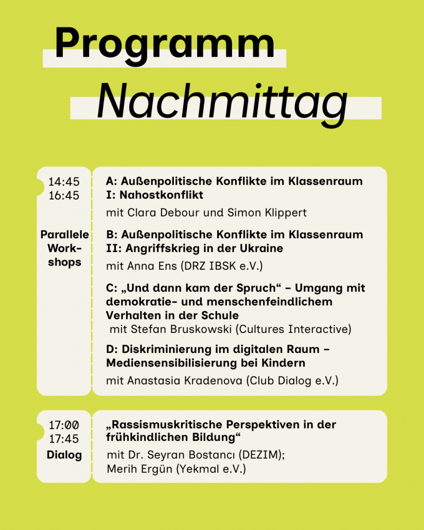 Umso mehr braucht es Räume des Austauschs, des gemeinsamen Lernens und der solidarischen Vernetzung. Räume, in denen wir Haltung zeigen, Widersprüche aushalten und konkrete Wege finden, unserer Migrationsgesellschaft gerecht zu werden – im Alltag, in den Strukturen, in der Ausbildung.