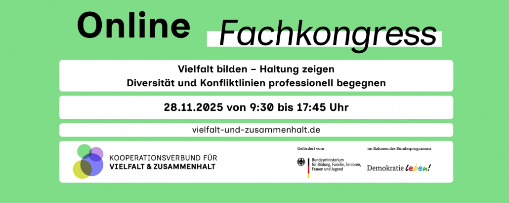 An diesem Tag findet von 09:30 Uhr bis 17:45 Uhr der Fachkongress des Kooperationsverbundes für Vielfalt und Zusammenhalt mit dem Titel: